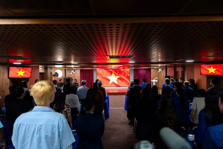 Lần đầu tiên, tất cả cơ sở giáo dục trên toàn quốc đồng loạt chào cờ, hát Quốc ca trong lễ khai giảng. Sinh viên HSU cùng hàng triệu học sinh, sinh viên cả nước đã lắng nghe thông điệp từ Tổng Bí thư Tô Lâm: thế hệ trẻ hôm nay có trách nhiệm làm nên chiến thắng mới bằng tri thức – bản lĩnh – sáng tạo.